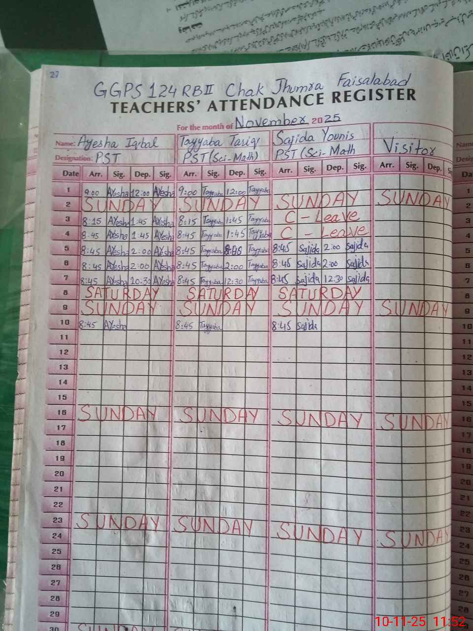 | District: FAISALABAD | Tehsil: CHAK JHUMARA | Markaz: SAHIANWALA - FEMALE | Level: Primary | |