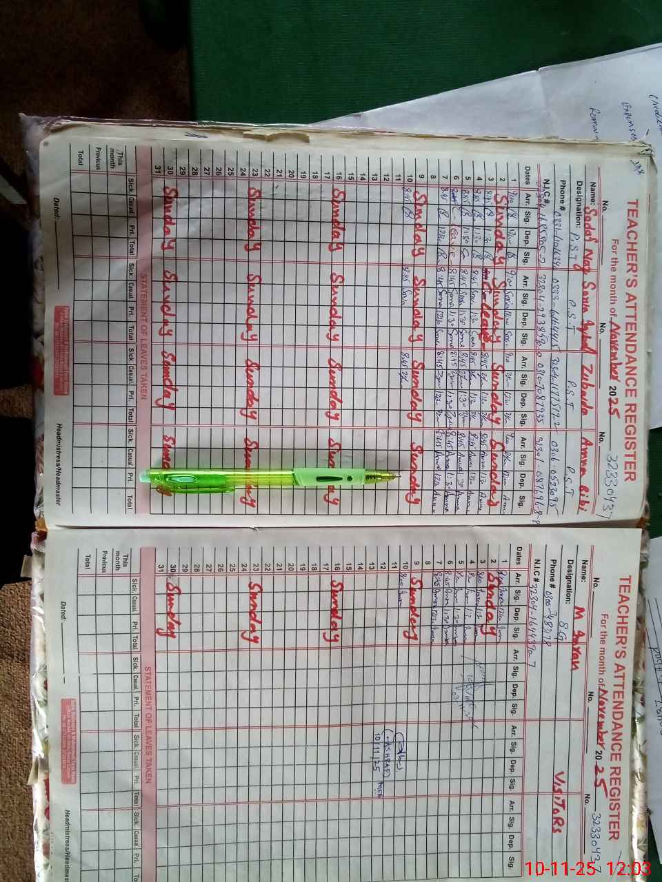 | Name: SA**** NA**** Designation: (School Headmaster's/Headmistress's) PST SC Phone/Cell Number: 03**** |