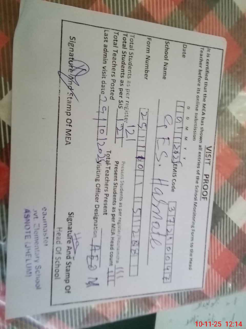 | Certified that this School was Inspected by the Undersigned MEA/DMO Today and the Information Stated Above is as Per Record. | |||||