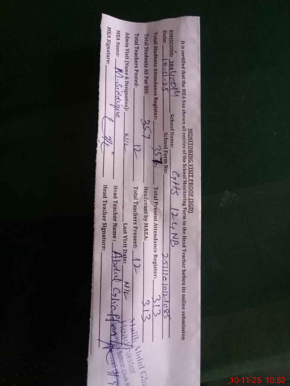 | Certified that this School was Inspected by the Undersigned MEA/DMO Today and the Information Stated Above is as Per Record. | |||||