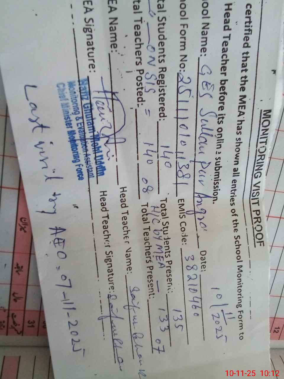 | EMIS Code: 38210460 | Name of School: GES SULTAN PUR ANGRA | |||