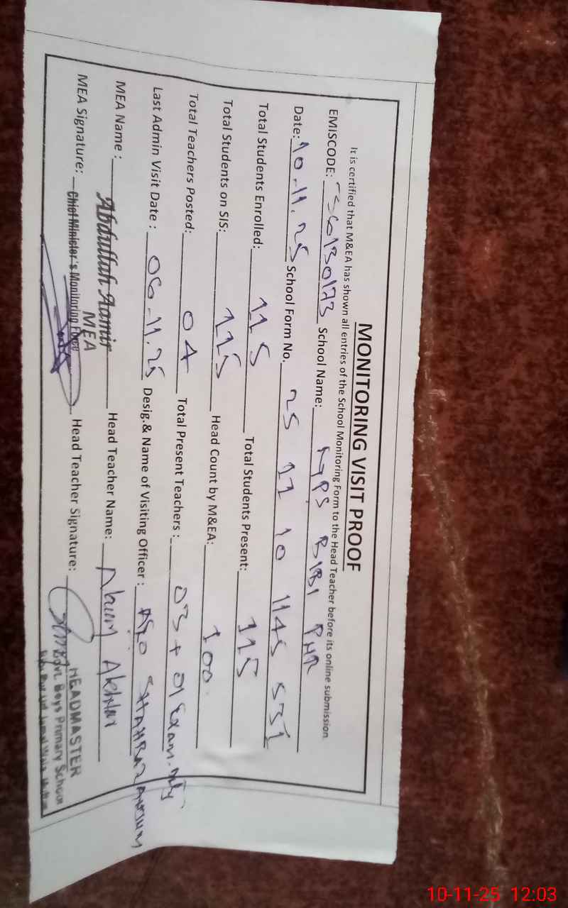 | EMIS Code: 36130173 | Name of School: GPS BIBI PUR MARDAN PUR MULTAN | |||