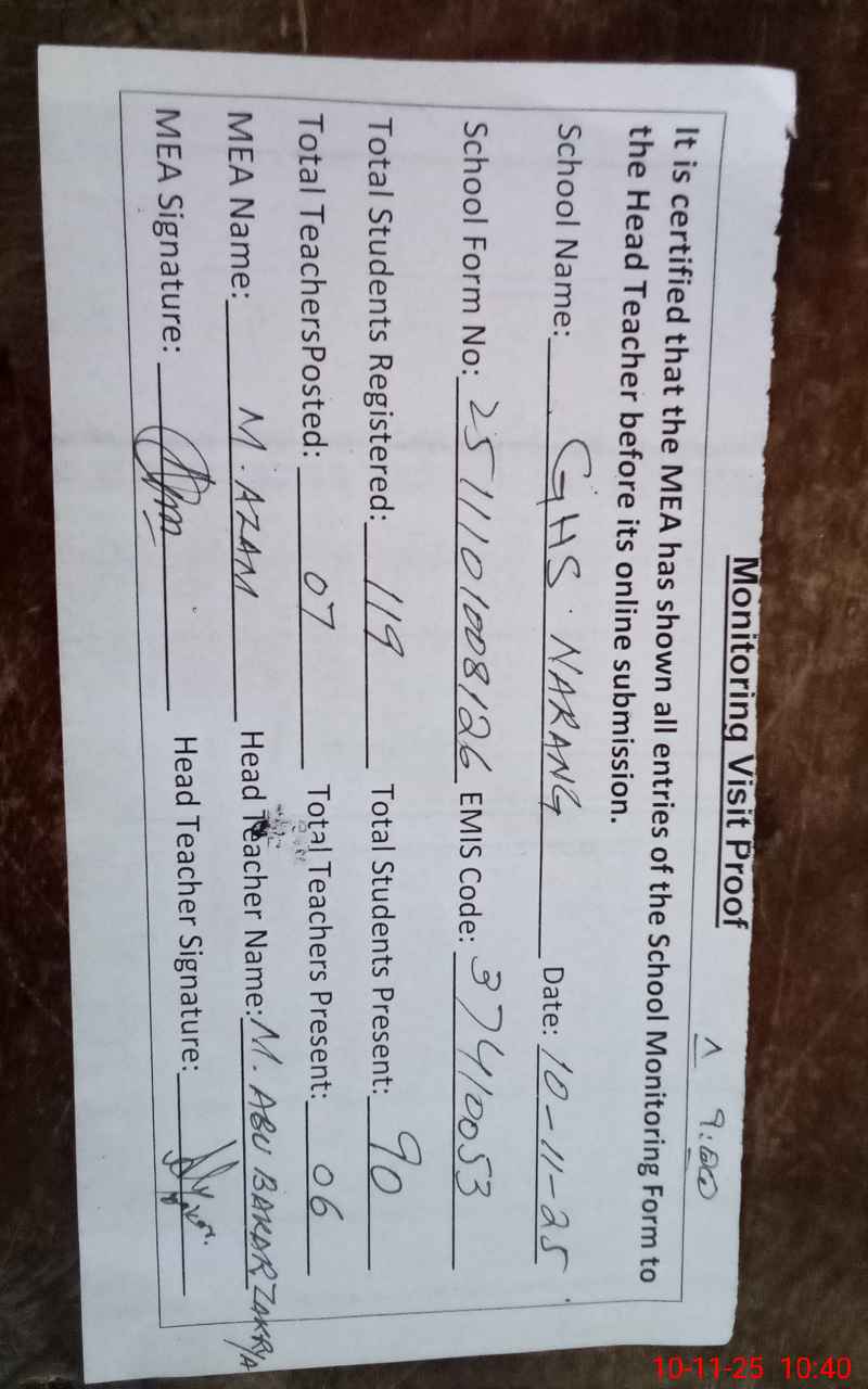 | EMIS Code: 37410053 | Name of School: GHS NARANG CHAKWAL | |||
