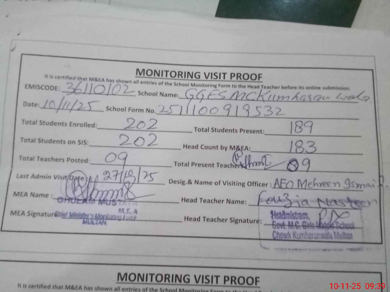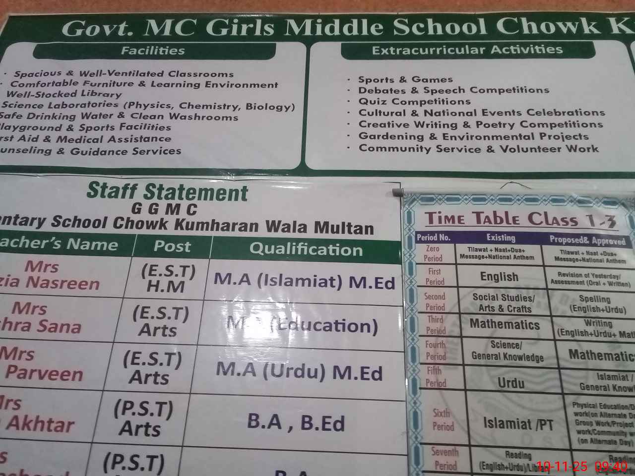 | EMIS Code: 36110102 | Name of School: GGES MC KUMHARAN WALA MULTAN | |||