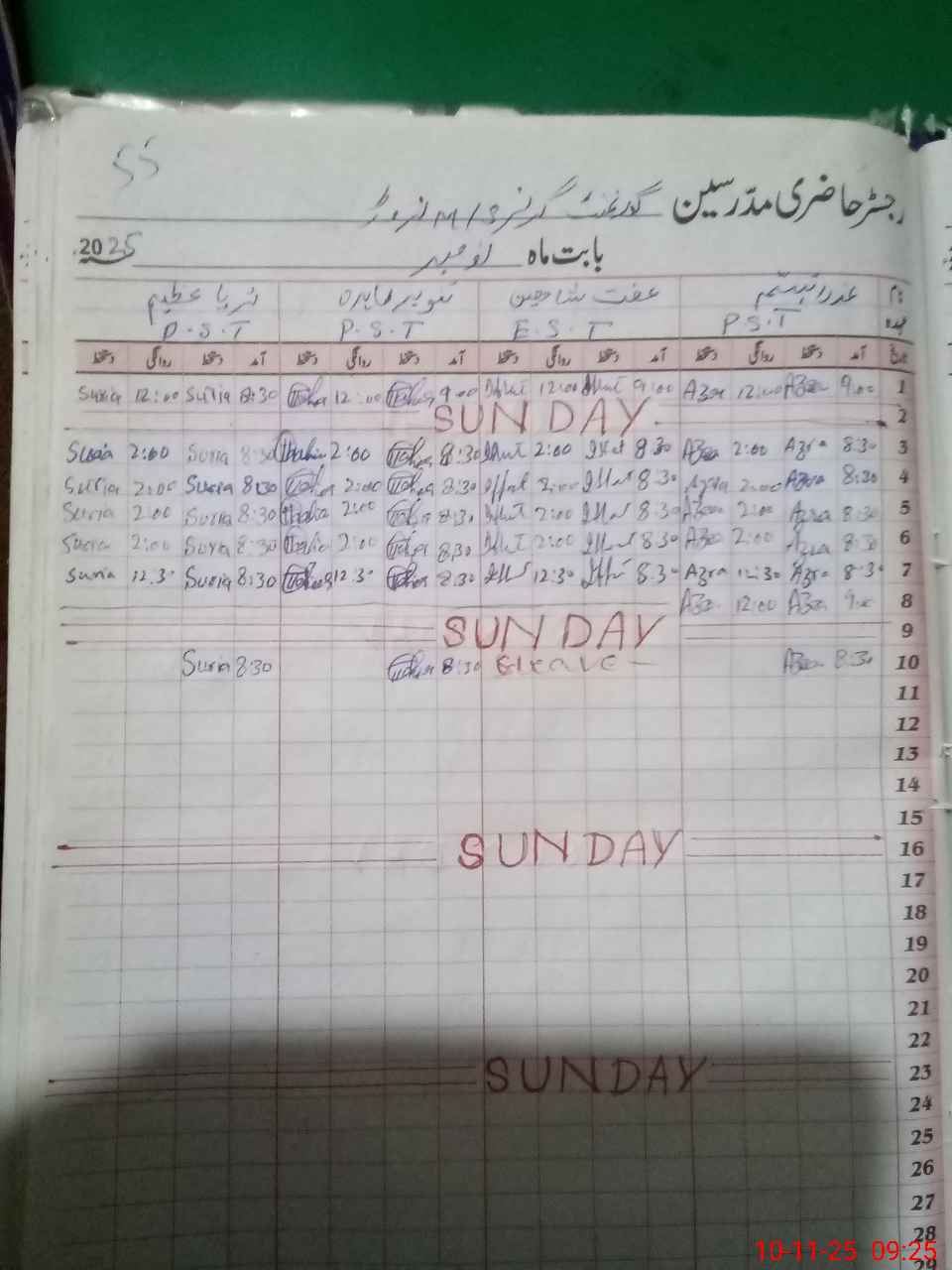| CNIC | Full Name | Designation | R/C | Absence During Last Calender Month |
