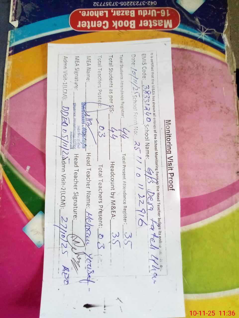 | EMIS Code: 38331240 | Name of School: GPS DERA FATEH KHANWALA | |||