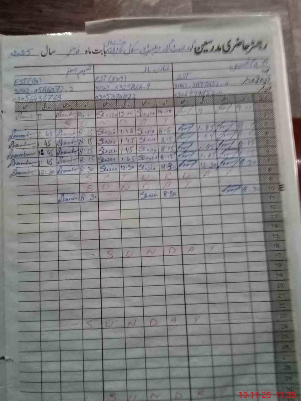 | Name: IR**** TE**** Designation: (School Headmaster's/Headmistress's) S.S.E.(art) Phone/Cell Number: 03**** |