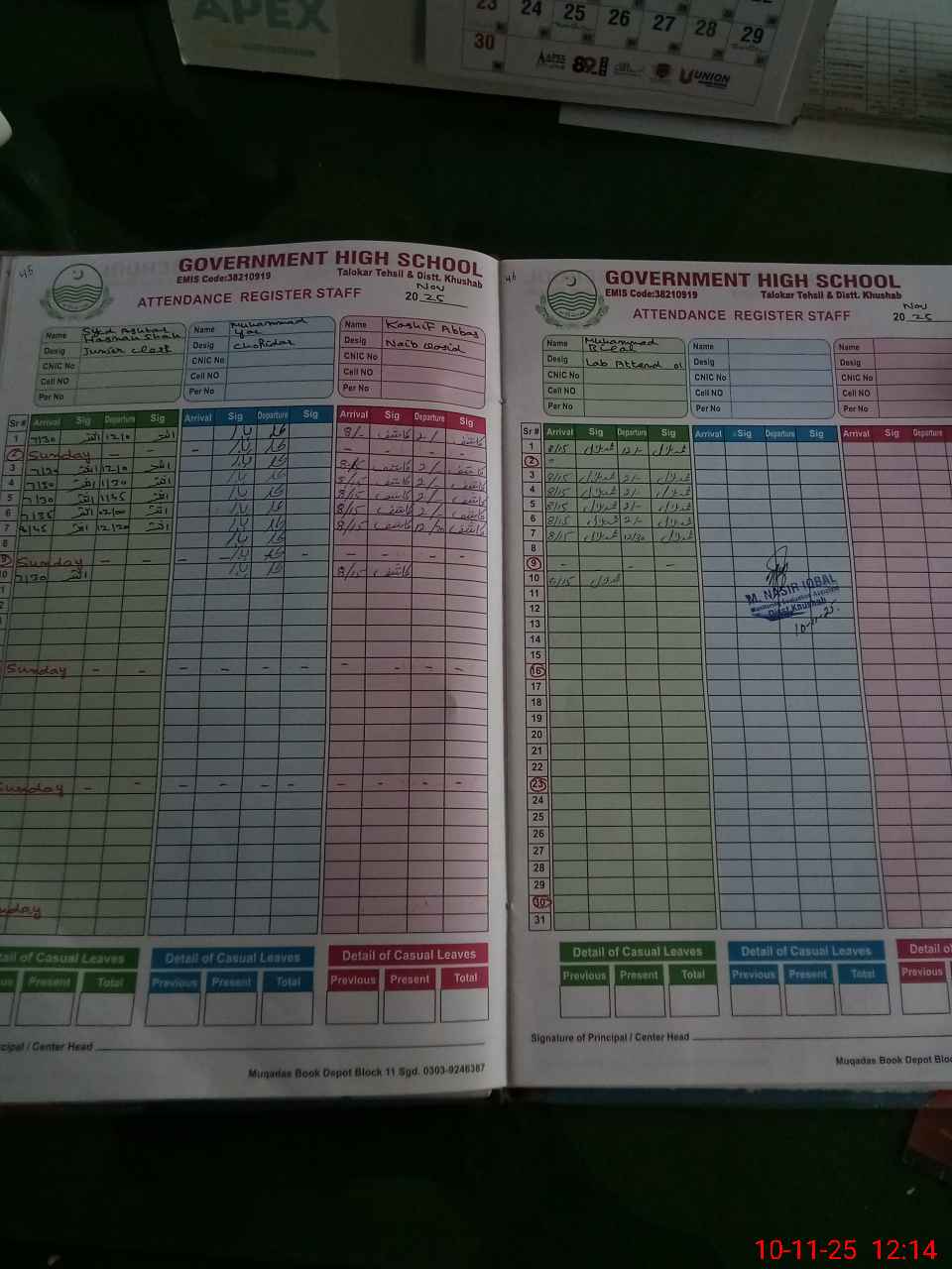 | CNIC | Full Name | Designation | R/C | Absence During Last Calender Month |