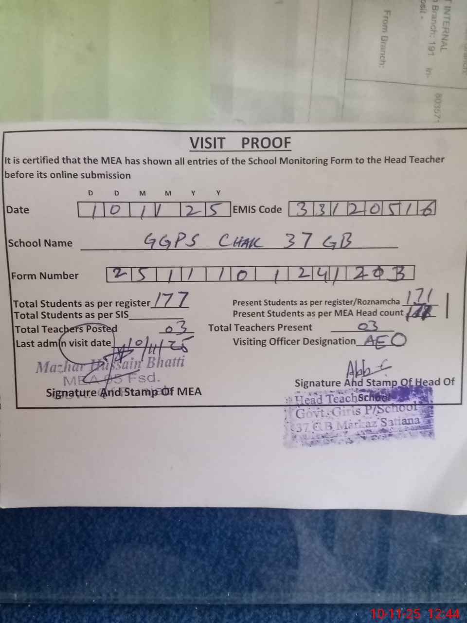| EMIS Code: 33120516 | Name of School: GGPS CHAK 37 GB SATIANA | |||