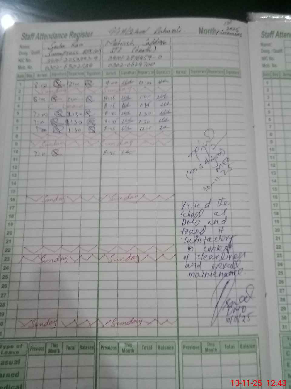 | CNIC | Full Name | Designation | R/C | Absence During Last Calender Month |
