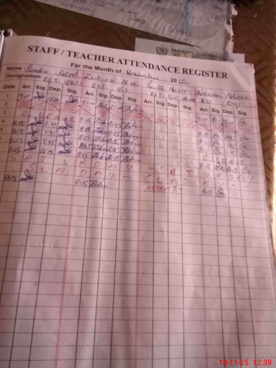 | Name: Sa**** Ba**** Designation: (School Headmaster's/Headmistress's) EST(PET) Phone/Cell Number: 03**** |