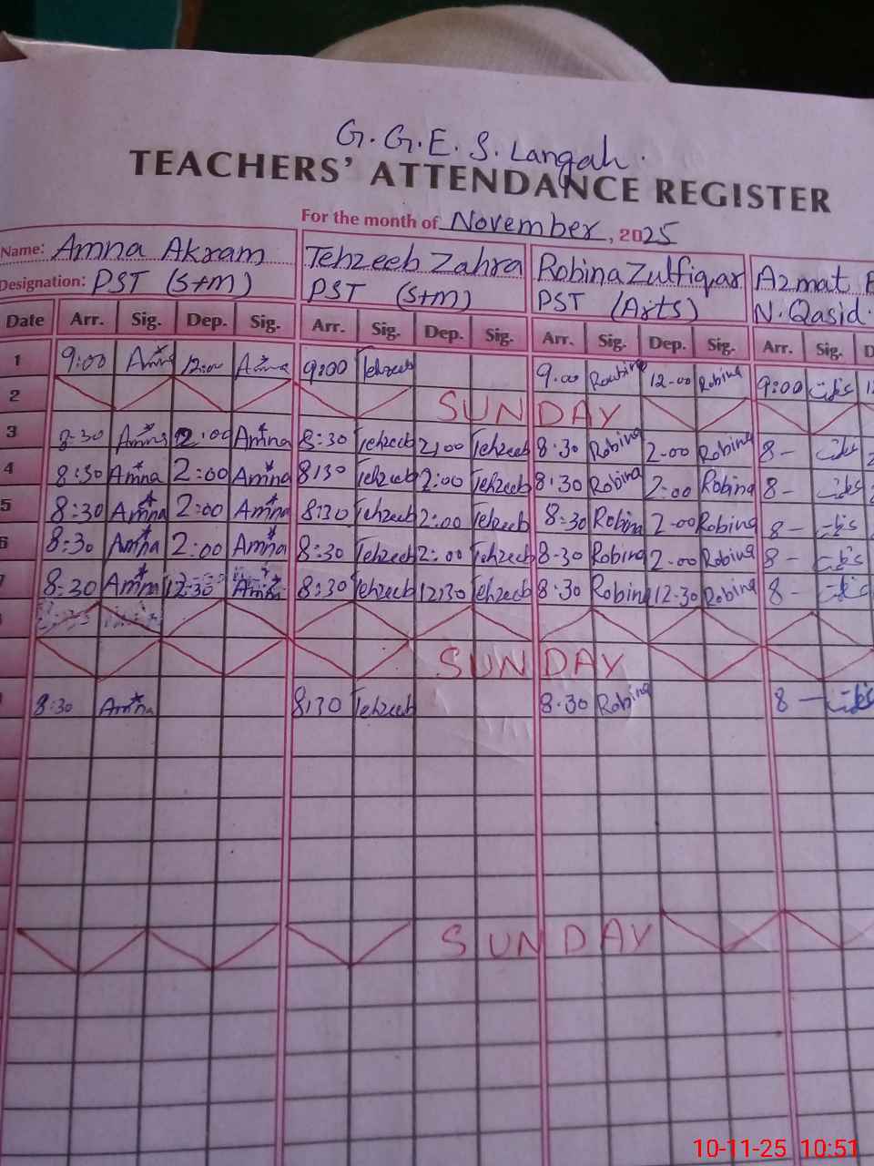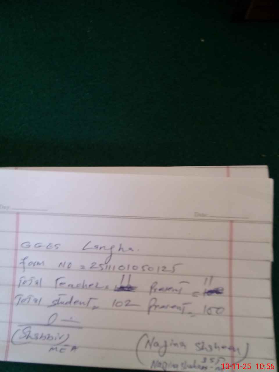 | Monitoring Date: 10-11-2025 | Start Time: 10-11-2025 10:00 AM | End Time: 10-11-2025 10:57 AM | Name of MEA: Sh**** Hu**** | |