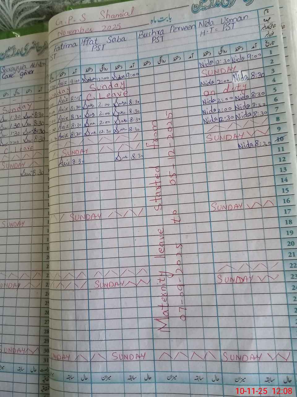 | Leave | Duty | Absent | Maternity | Medical | Ex- Pak |