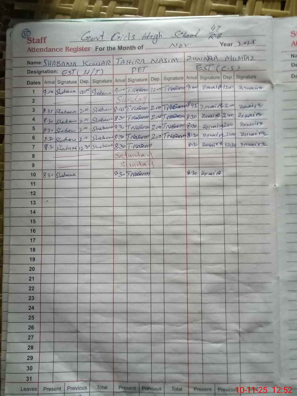 | CNIC | Full Name | Designation | R/C | Absence During Last Calender Month |