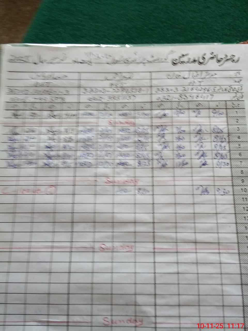 | CNIC | Full Name | Designation | R/C | Absence During Last Calender Month |
