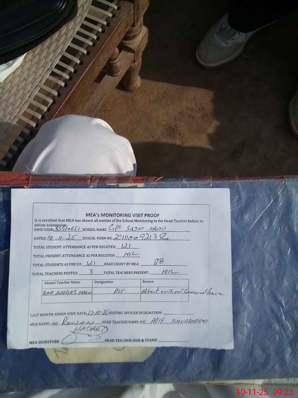 | EMIS Code: 36410651 | Name of School: GPS SAJID ABAD KORHI BLOUCH KABIRWALA | |||