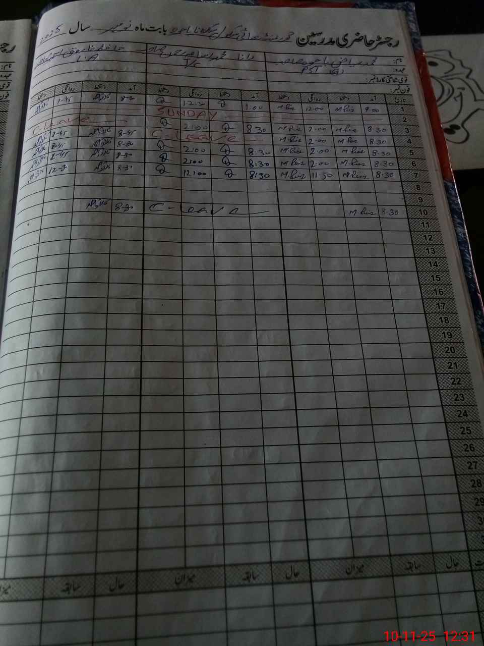 | CNIC | Full Name | Designation | R/C | Absence During Last Calender Month |