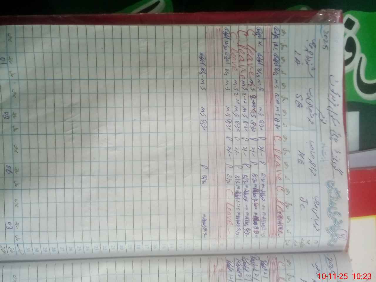 | Leave | Duty | Absent | Maternity | Medical | Ex- Pak |