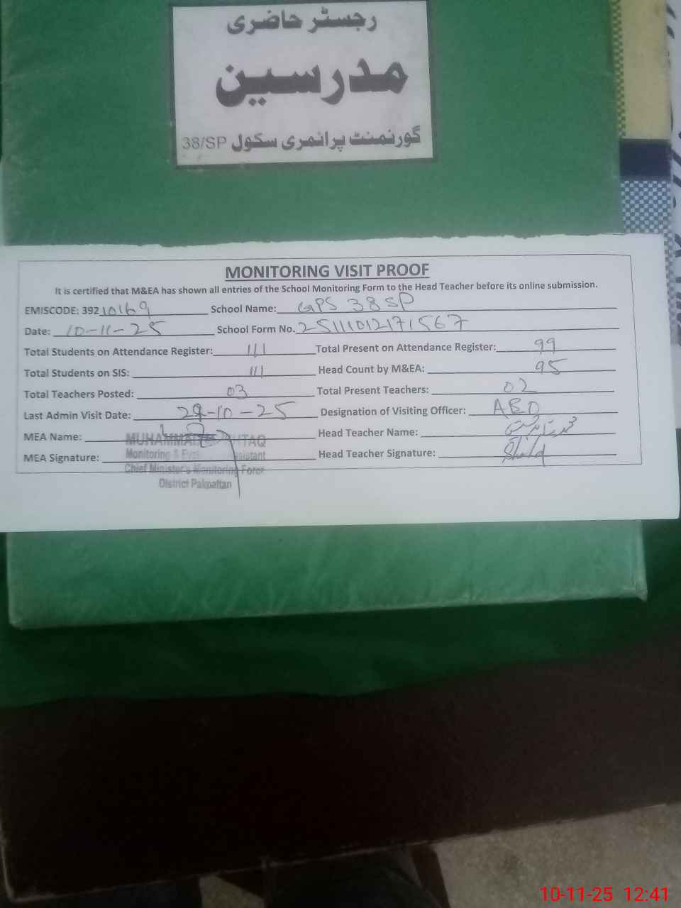 | EMIS Code: 39210169 | Name of School: GPS 38 SP | |||