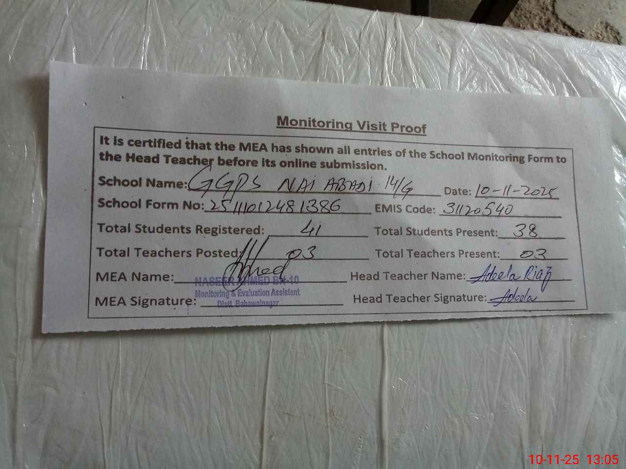 | EMIS Code: 31120540 | Name of School: GGPS NAI ABADI 14/G | |||