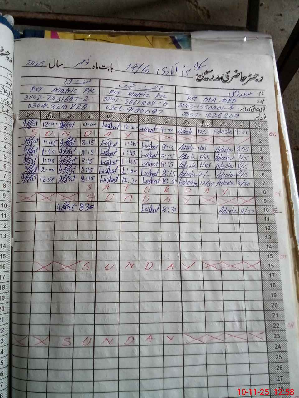 | Name: Ad**** Ri**** Designation: (School Headmaster's/Headmistress's) PST Phone/Cell Number: 03**** |