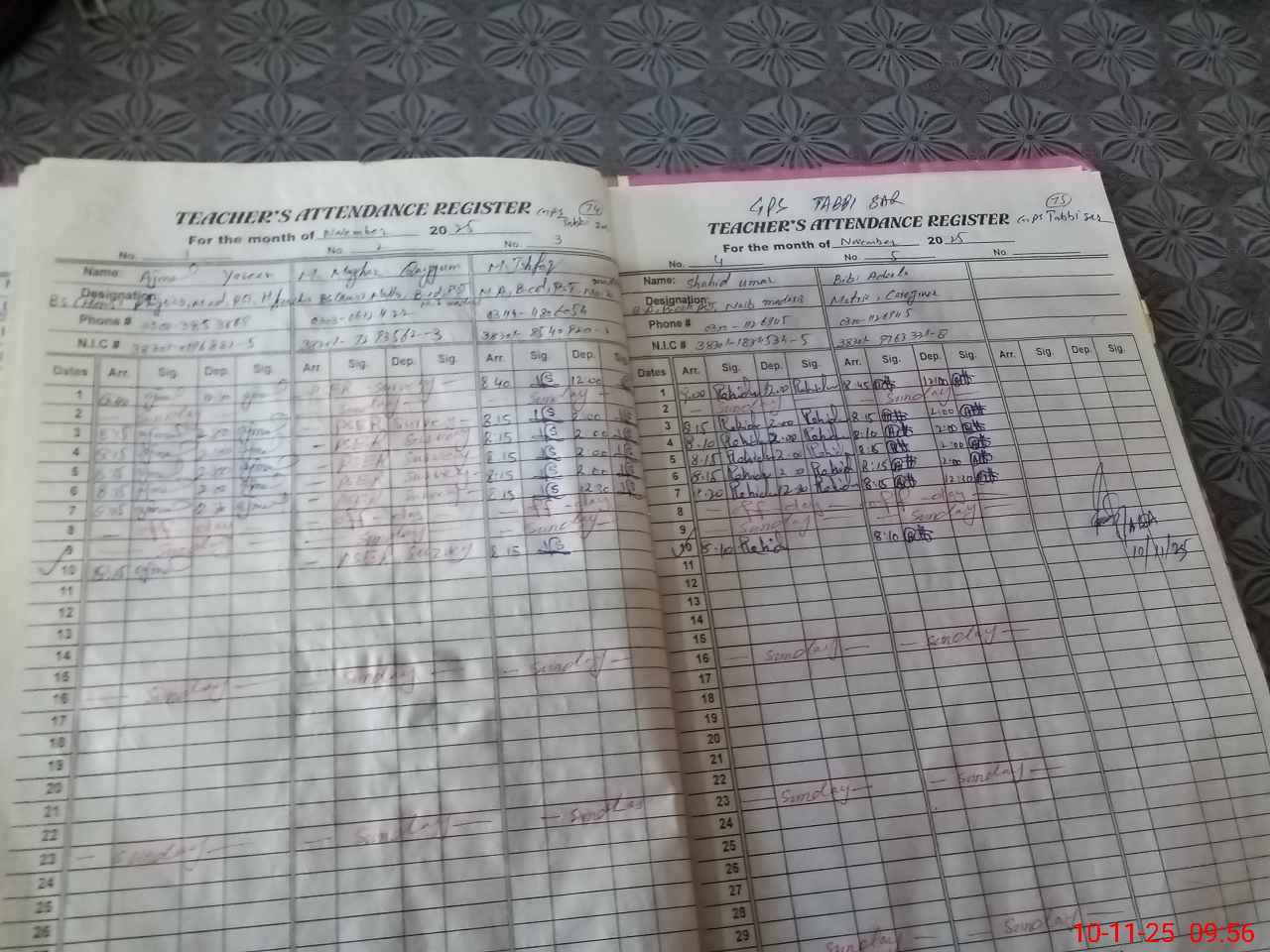| CNIC | Full Name | Designation | R/C | Absence During Last Calender Month |
