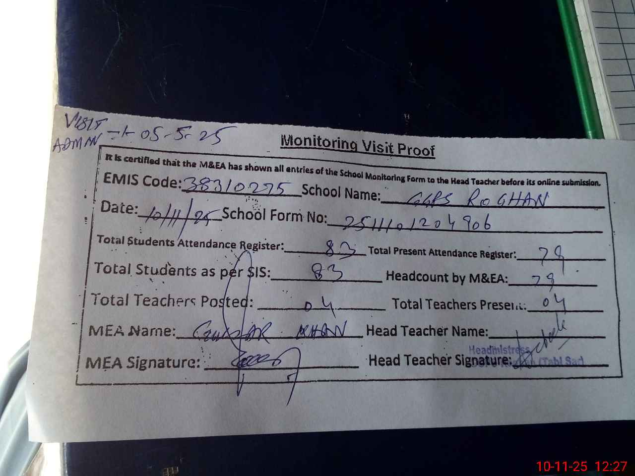 | EMIS Code: 38310275 | Name of School: GGPS ROGHAN P/O TABBI SAR | |||