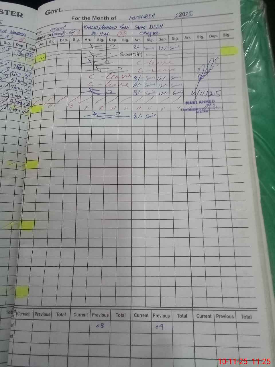 | CNIC | Full Name | Designation | R/C | Absence During Last Calender Month |