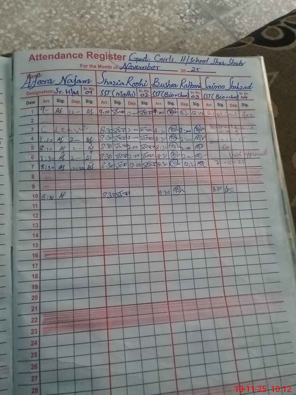 | 35**** | Ra**** Fa**** | JC | 0 | 0 | 30 | 0 | 0 | 0 | 0 | 0 | 0 | Absent (Un-Authorized) | |