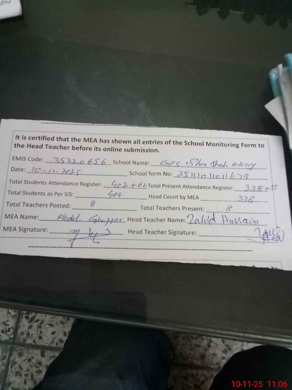 | Monitoring Date: 10-11-2025 | Start Time: 10-11-2025 10:28 AM | End Time: 10-11-2025 11:06 AM | Name of MEA: AB**** GH**** | |