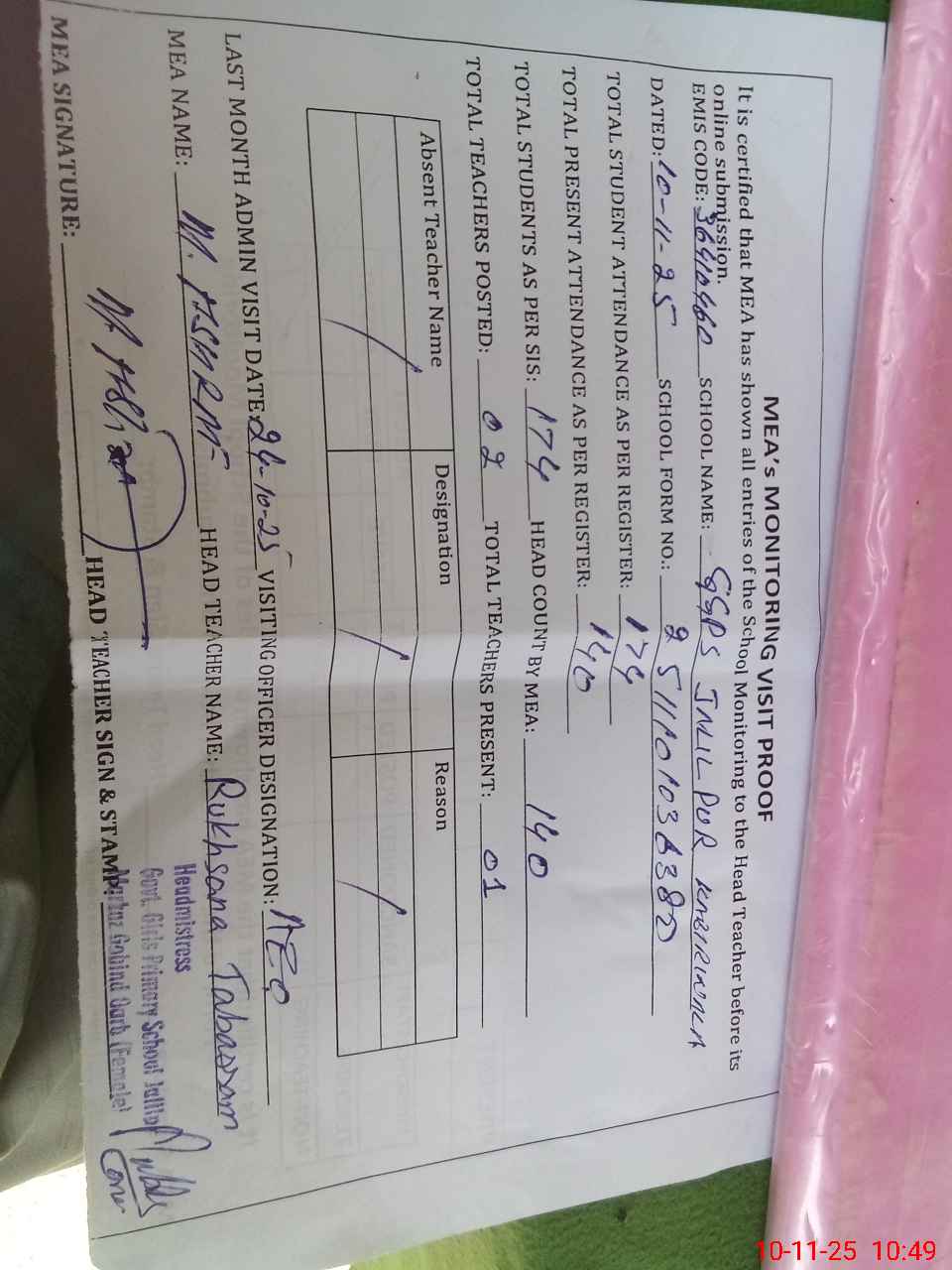 | EMIS Code: 36410460 | Name of School: GGPS JALIL PUR, ABDUL HAKIM | |||