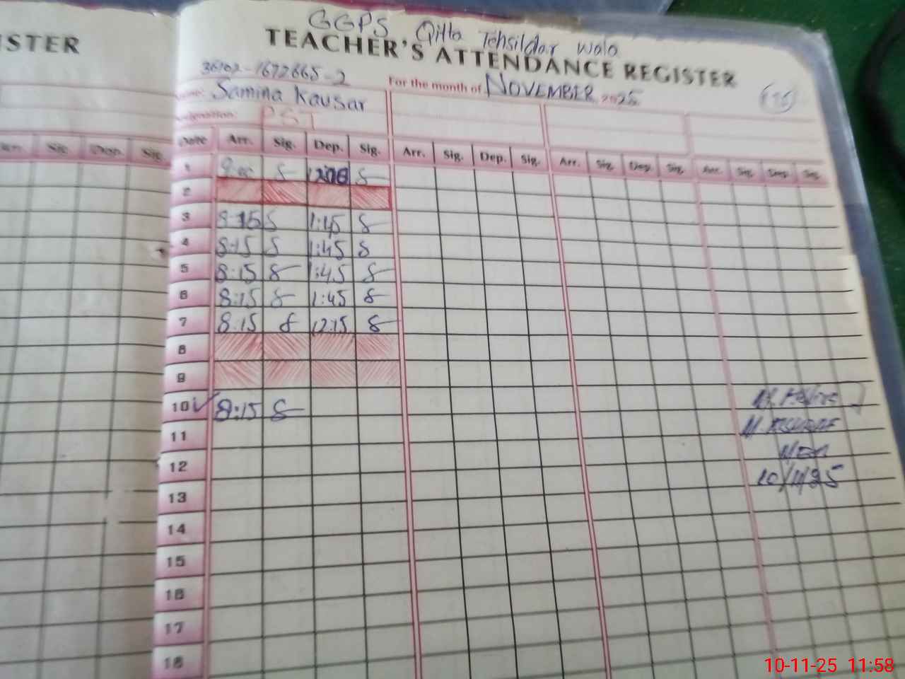 | Name: Sa**** Ko**** Designation: (School Headmaster's/Headmistress's) PST Phone/Cell Number: 03**** |
