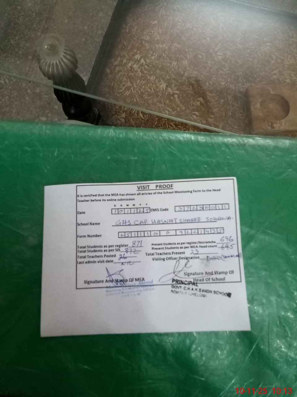 | EMIS Code: 37230011 | Name of School: GHS CAPTAIN HASNAT SHAHEED SOHAWA | |||