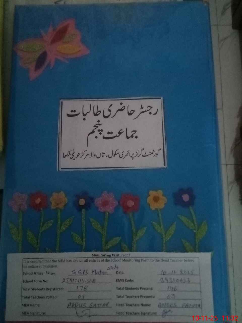| Attendance Register | Head Teacher | MEA with School | Visit Proof |