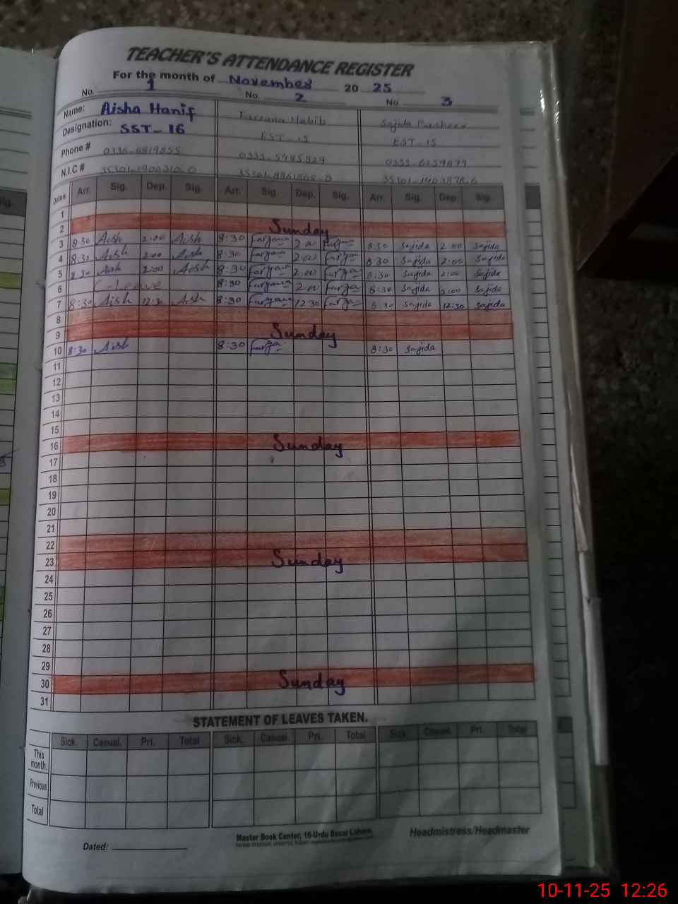 | Name: AI**** HA**** Designation: (School Headmaster's/Headmistress's) SST GENERAL Phone/Cell Number: 03**** |