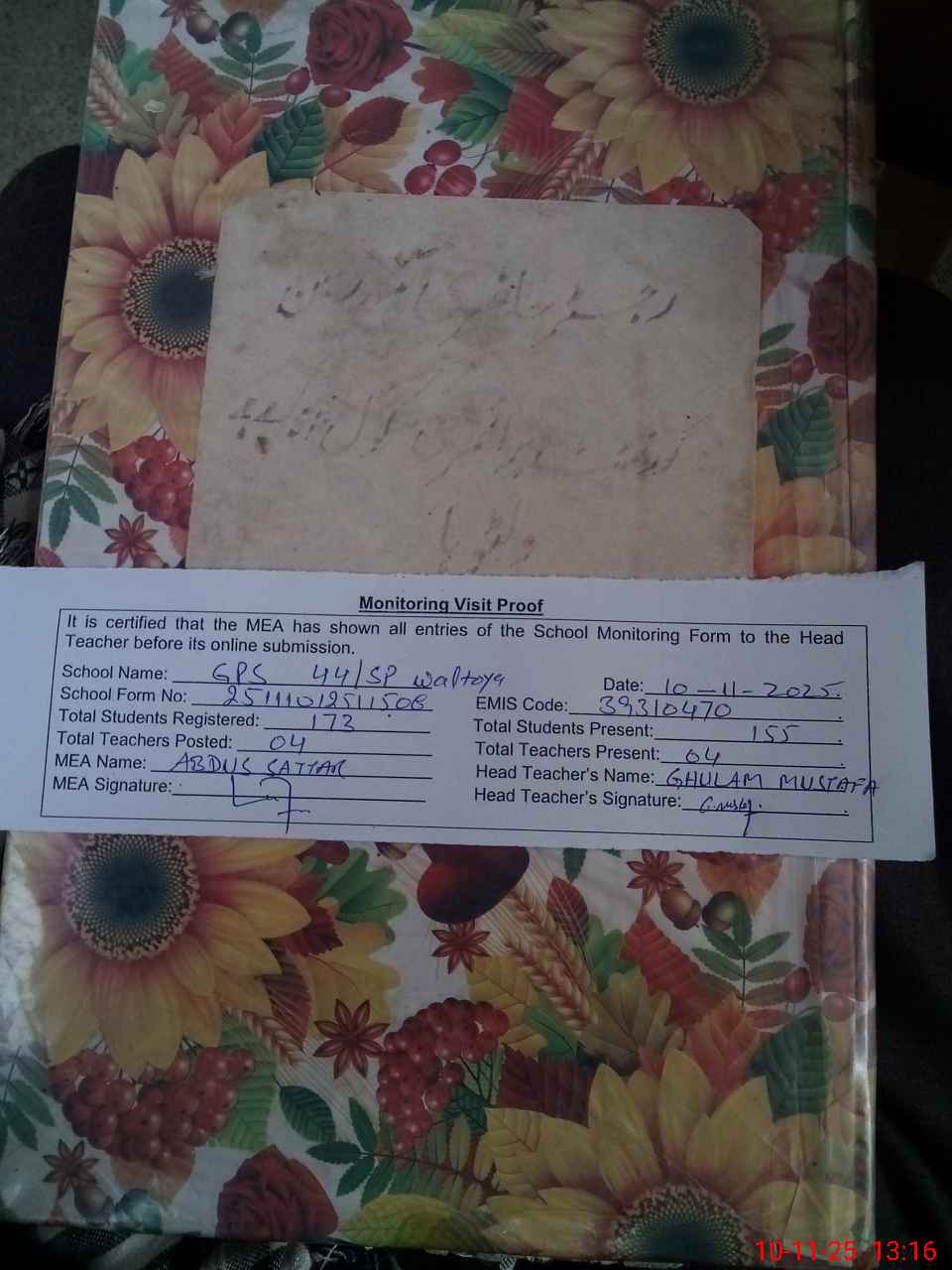 | EMIS Code: 39310470 | Name of School: GPS CHAK 44 SP WALTOHA | |||