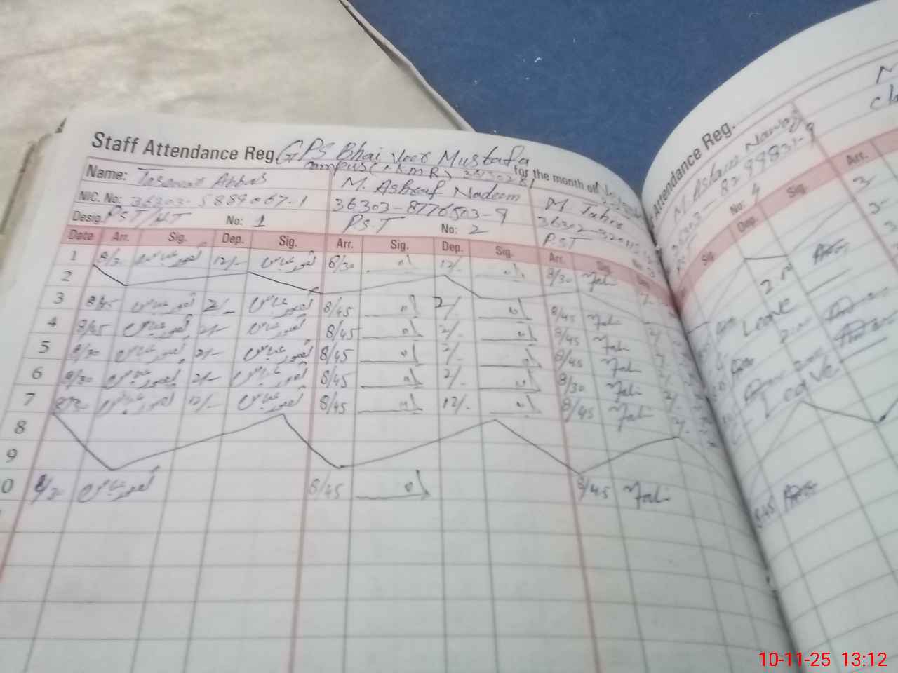 | CNIC | Full Name | Designation | R/C | Absence during last cal. month |
