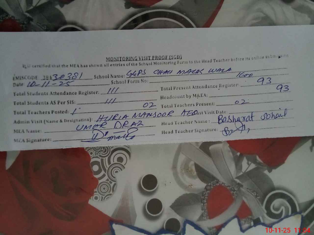 | EMIS Code: 38430381 | Name of School: GGPS MALIK WALA | |||