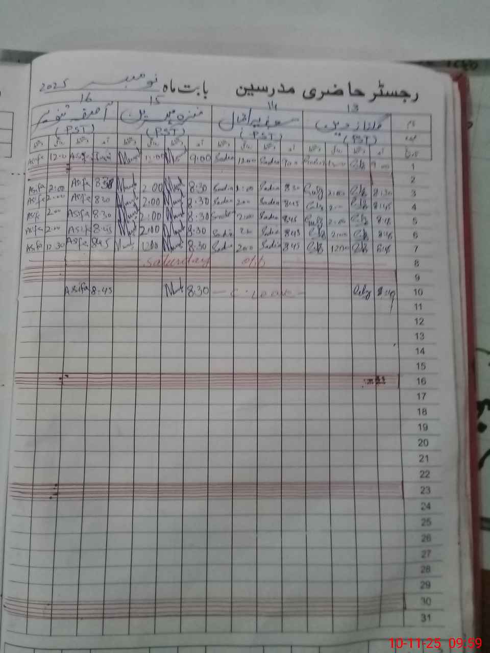 | CNIC | Full Name | Designation | R/C | Absence During Last Calender Month |