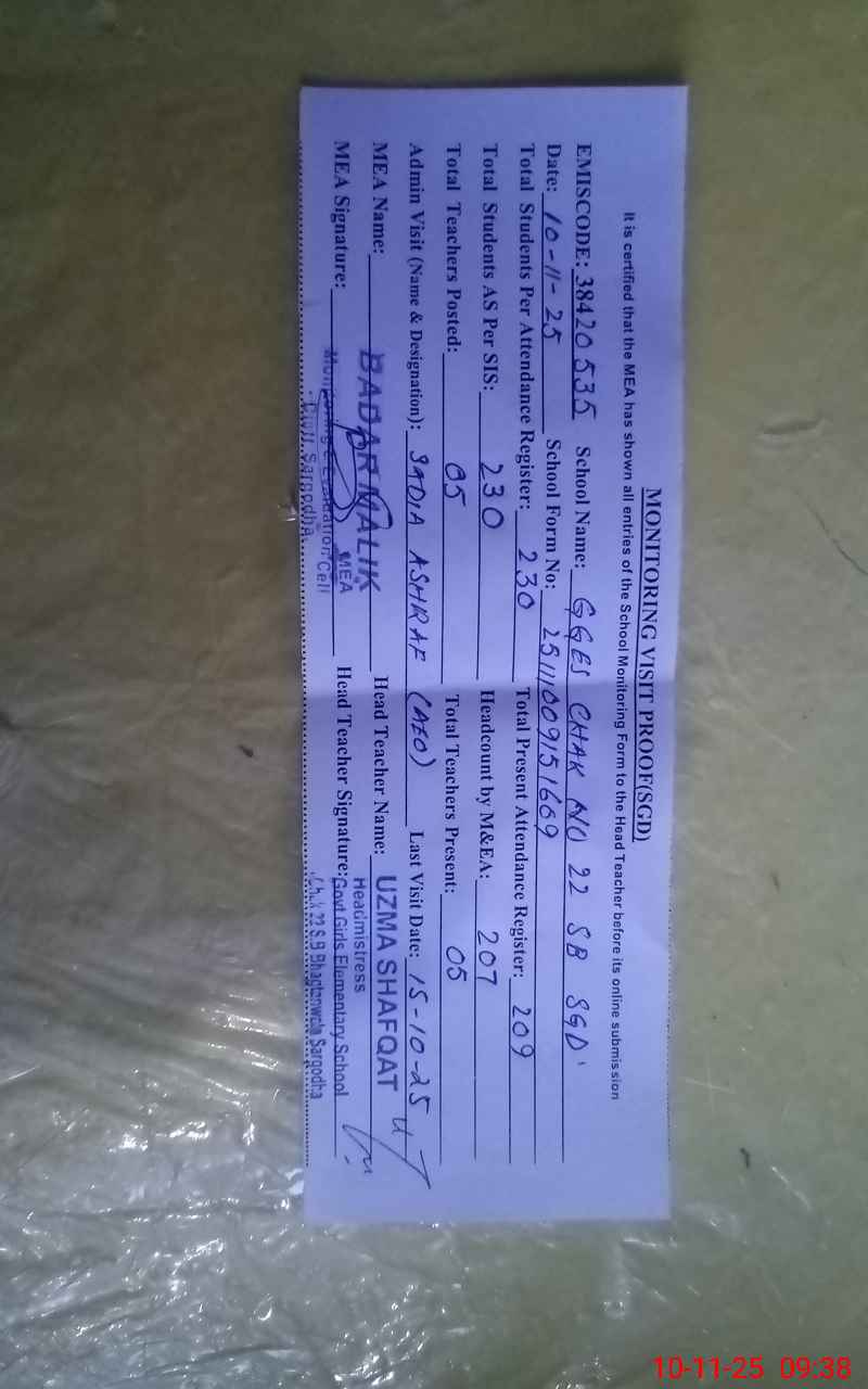 | EMIS Code: 38420535 | Name of School: GGES CHAK NO.22 SB BHAGTANWALA | |||