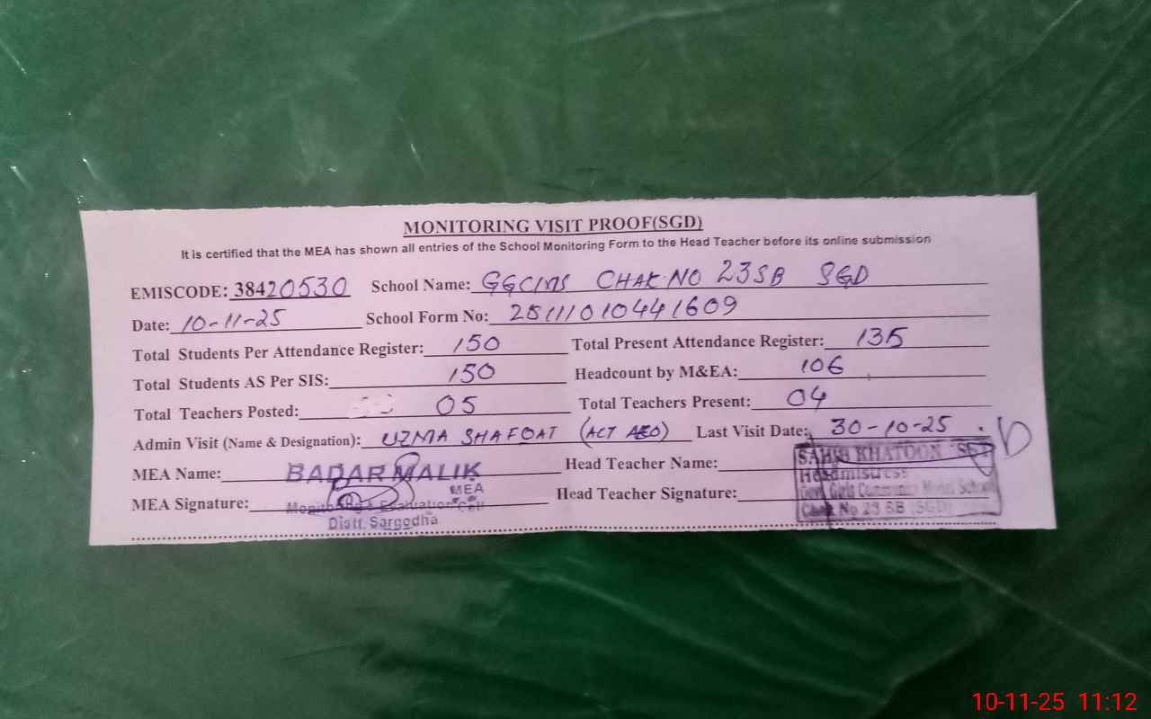 | EMIS Code: 38420530 | Name of School: GGCMS CHAK NO.23 SB SGD | |||