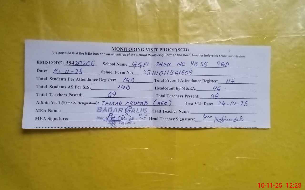 | EMIS Code: 38420206 | Name of School: GGES CHAK NO.93 SB | |||