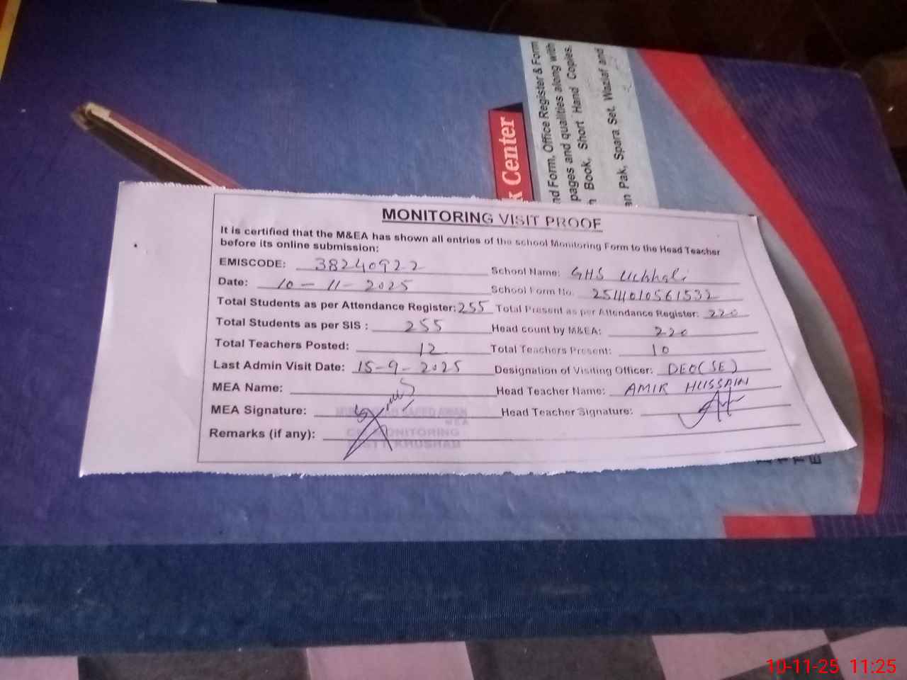 | EMIS Code: 38240922 | Name of School: GHS UCHHALI | |||