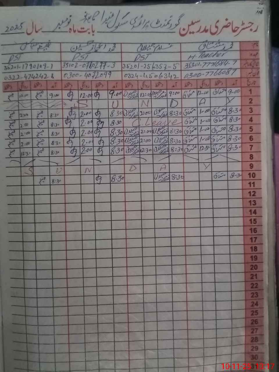 | CNIC | Full Name | Designation | R/C | Absence During Last Calender Month |