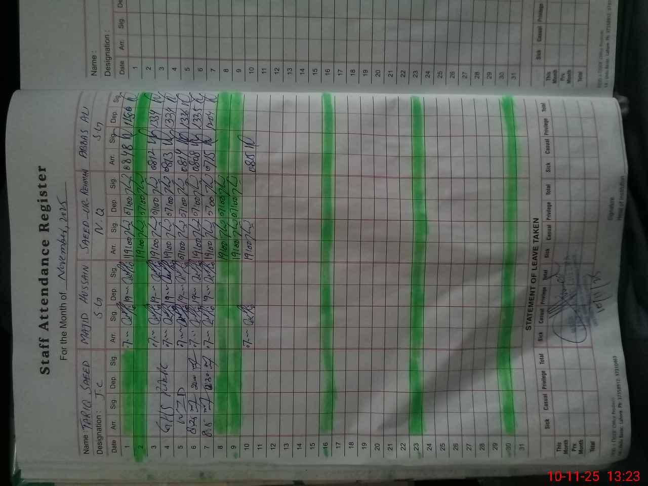 | CNIC | Full Name | Designation | R/C | Absence During Last Calender Month |