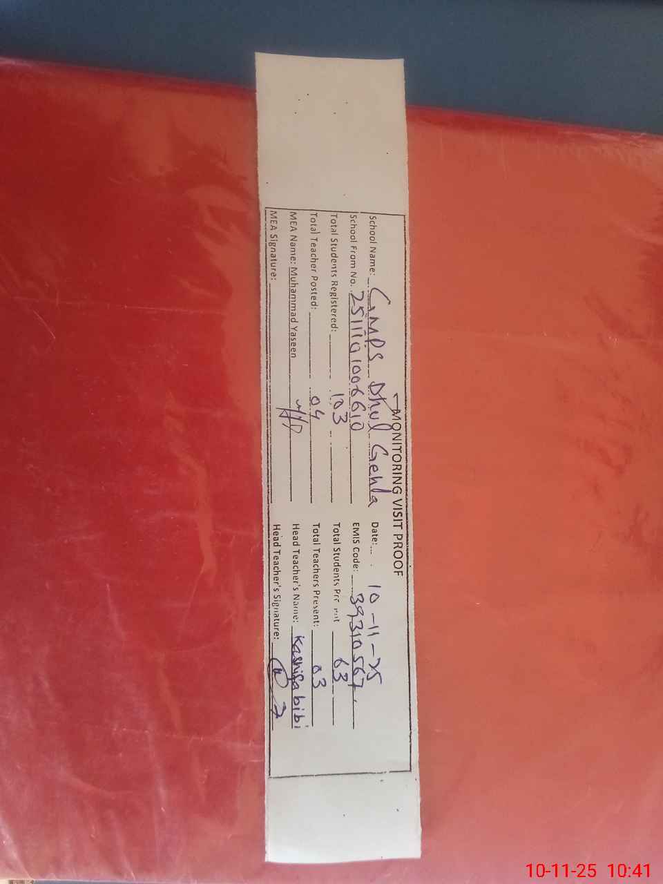 | EMIS Code: 39310567 | Name of School: GMPS DHUL GEHLA | |||