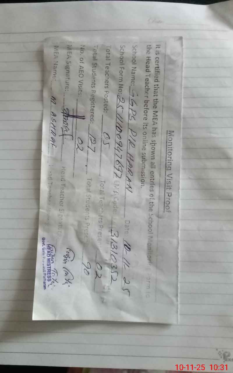 | EMIS Code: 31310352 | Name of School: GGPS PIRHARAN | |||