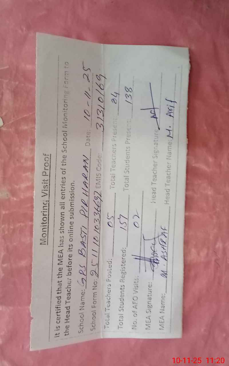 | EMIS Code: 31310169 | Name of School: GPS BASTI PIRHARAN | |||