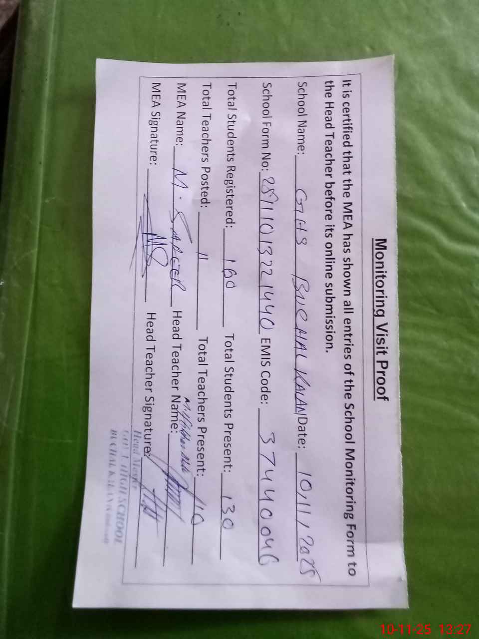 | EMIS Code: 37440046 | Name of School: GHS BUCHAL KALAN | |||