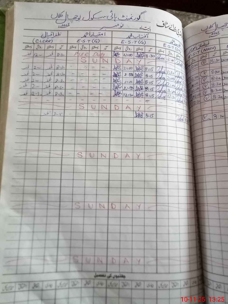 | 37**** | Na**** Ab**** | ESE Urdu | Contract | 0 | 0 | 0 | 0 | 0 | 0 | 0 | 0 | 0 | Exam Duty |